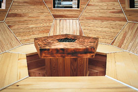Surrounding a fireplace